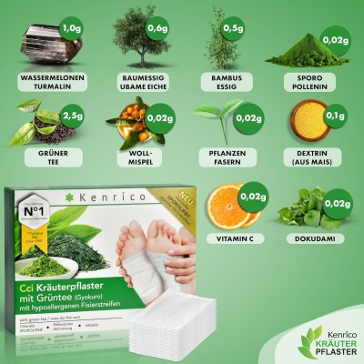 Dieses Kräuterpflaster mit edlem Gyokuro Grünteepulver ist reich an EGCG und wird vorwiegend auf die Fußreflexzonen geklebt. Hochwertigste Pflanzenstoffe aus biologischem Anbau vereinen sich mit Turmalin in dieser effizienten Form eines pflegenden neuzeitlichen Kräuterwickels. Als Weltmarktführer legt Kenrico seit über 30 Jahren höchsten Wert auf Qualität, Reinheit und internationale Forschung*.